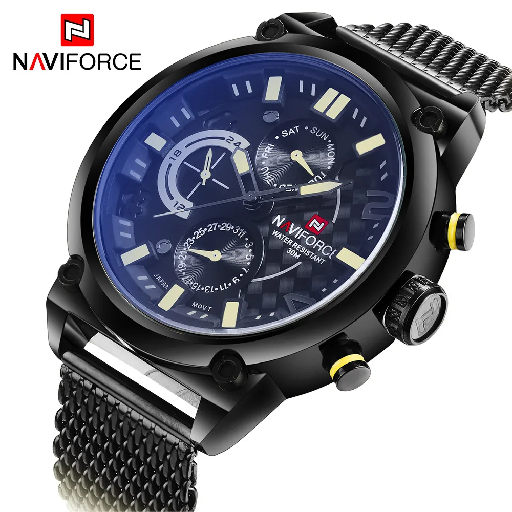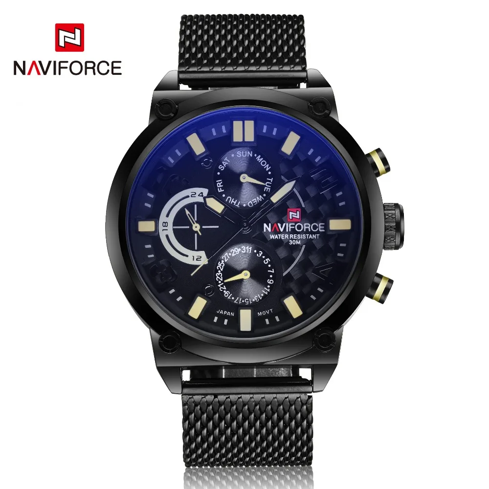 - NAVIFORCE Top Brand Men Luxury Watch Full Steel Quartz Male Sport Wrist Watches Military Leather Clock Relogio Masculino 2019 : Click here